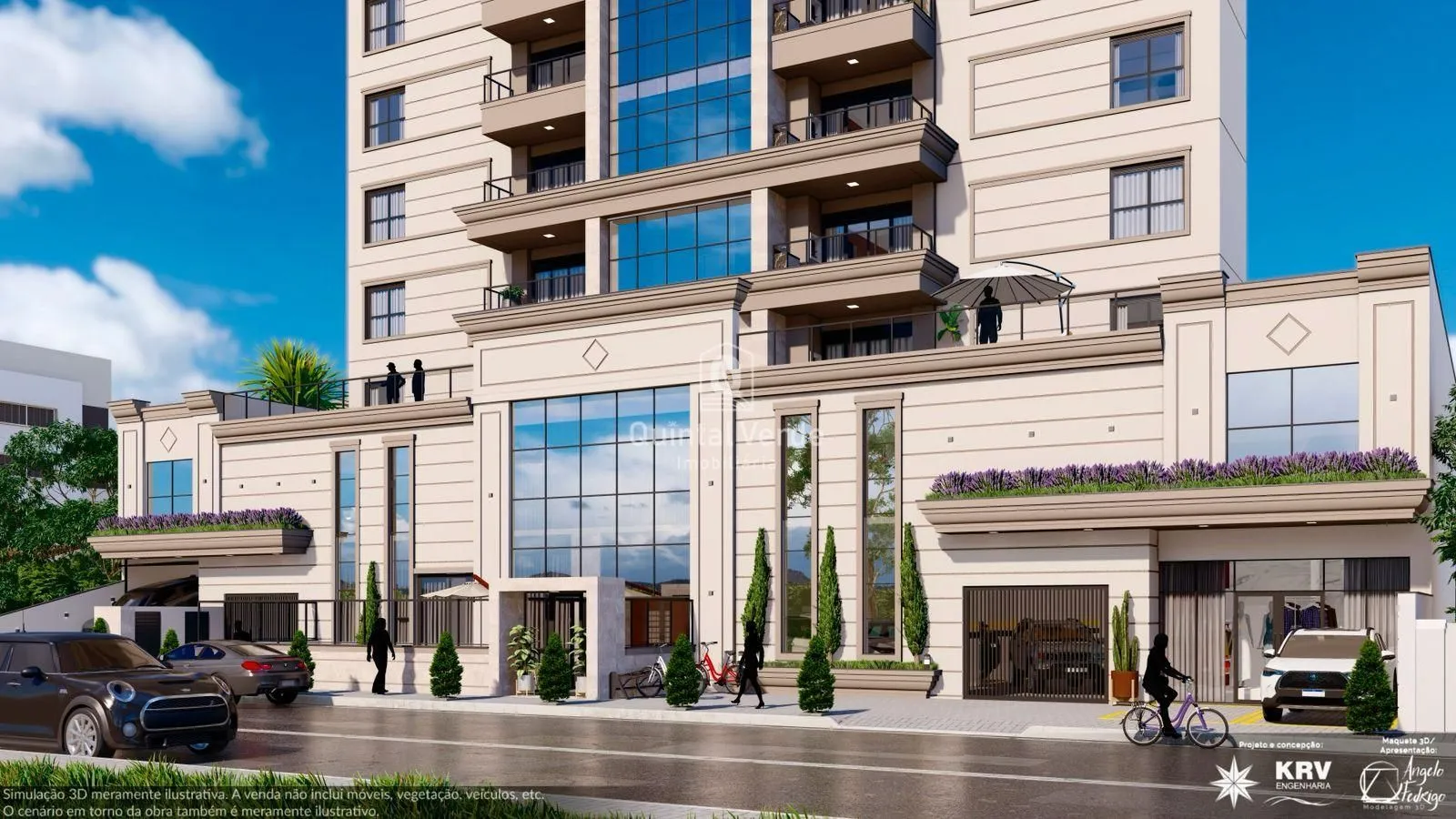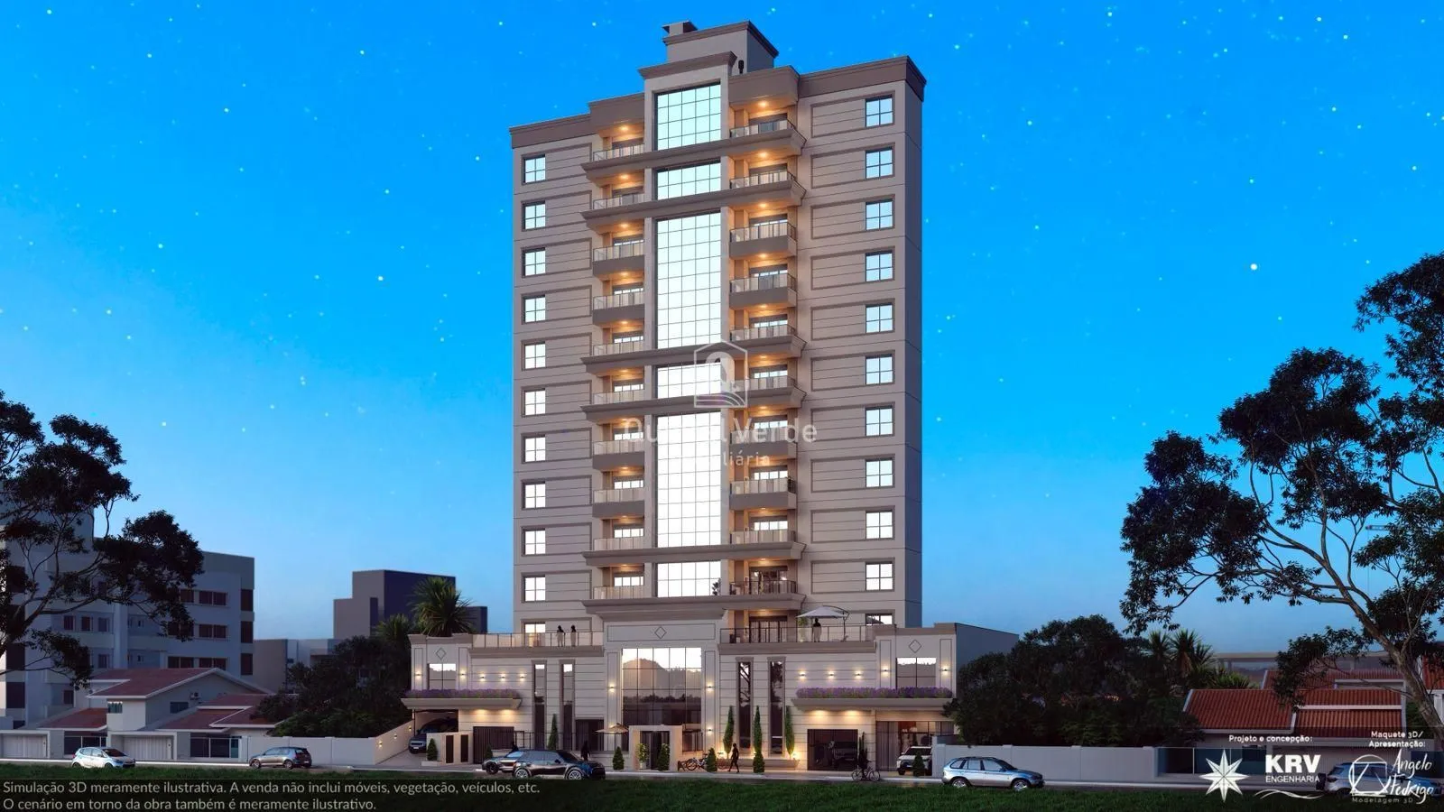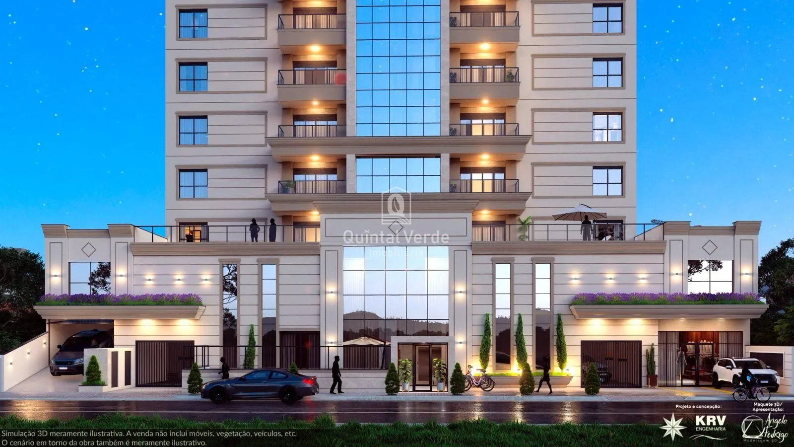 O residencial conta com fachada contemporânea em pele de vidro, elevador inteligente, hall mobiliado e uma área de lazer completa com salão de festas decorado, academia equipada e piscina. Os apartamentos incluem living integrado, porcelanato, esquadrias de alumínio, preparação para ar-condicionado, água quente e até duas vagas de garagem. Além disso, o condomínio oferece segurança interna com câmeras, interfone, medidores individuais, portão eletrônico e até tomada para carro elétrico.