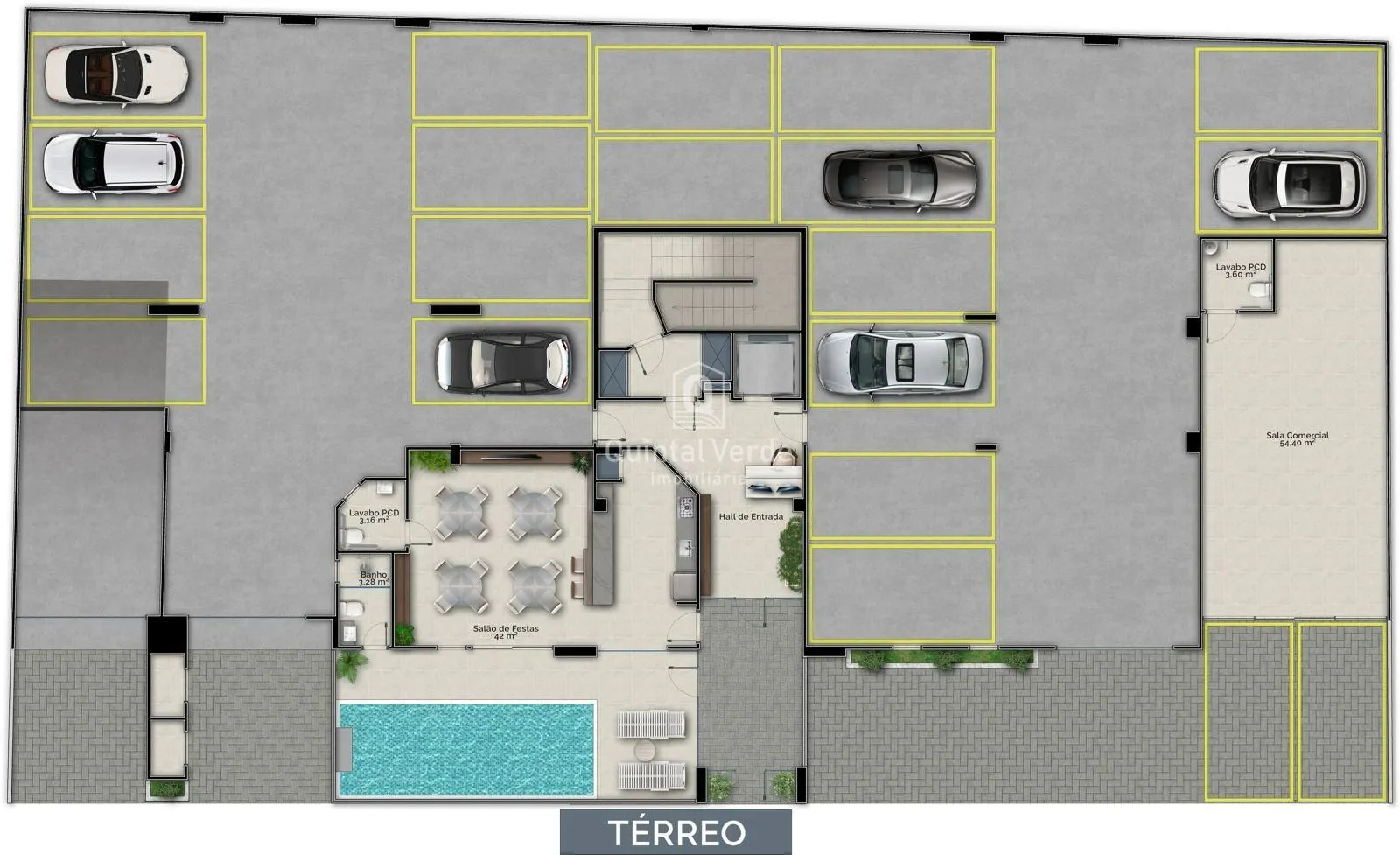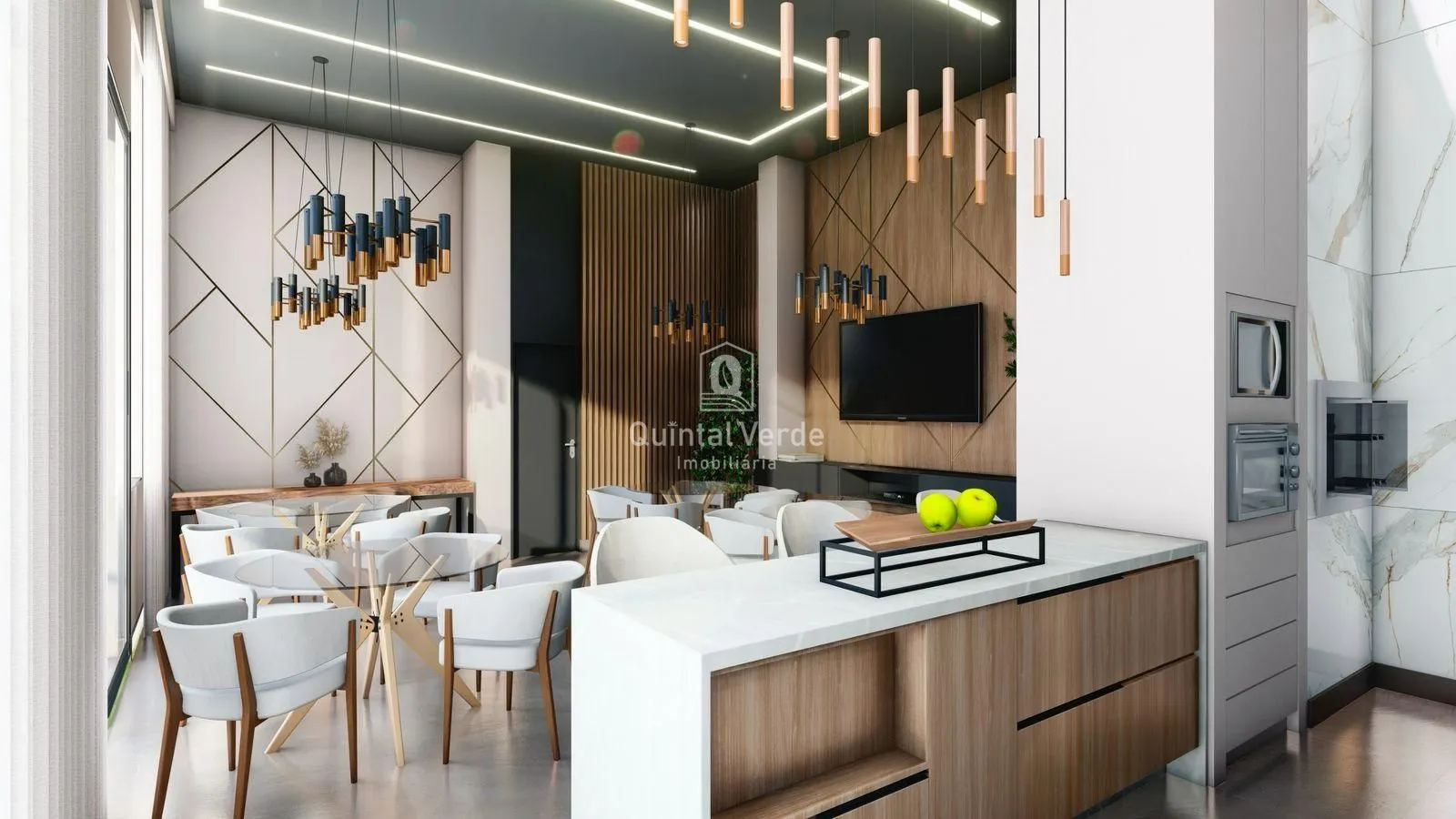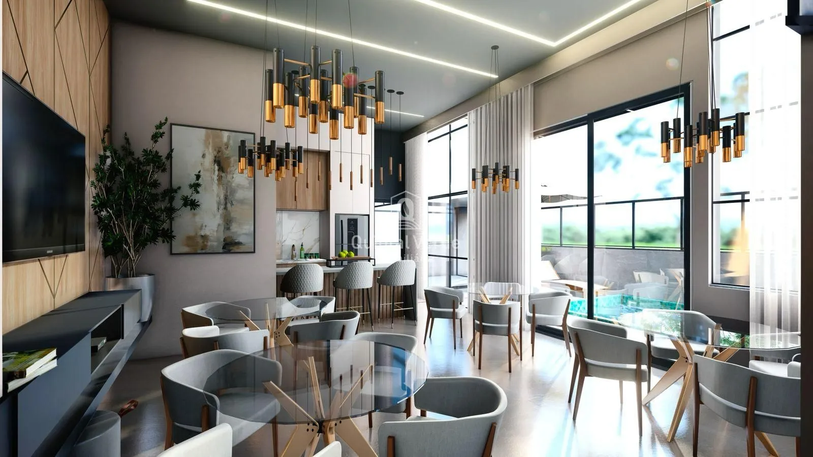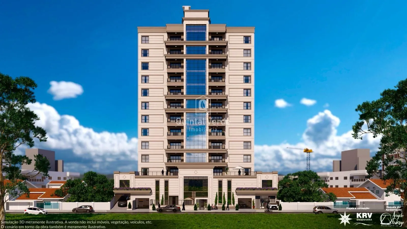 O residencial conta com fachada contemporânea em pele de vidro, elevador inteligente, hall mobiliado e uma área de lazer completa com salão de festas decorado, academia equipada e piscina. Os apartamentos incluem living integrado, porcelanato, esquadrias de alumínio, preparação para ar-condicionado, água quente e até duas vagas de garagem. Além disso, o condomínio oferece segurança interna com câmeras, interfone, medidores individuais, portão eletrônico e até tomada para carro elétrico.