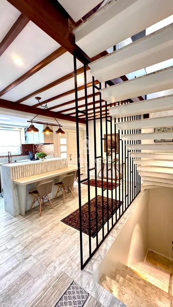 Com 201 m² privativos distribuídos em três pavimentos, o imóvel oferece excelente aproveitamento dos espaços, incluindo suítes amplas, ambientes integrados e garagem para três veículos.