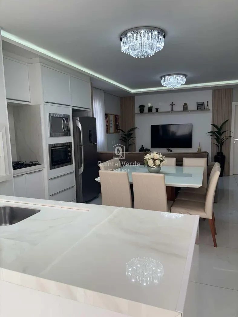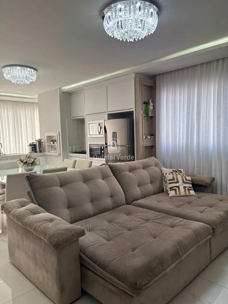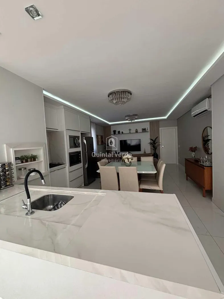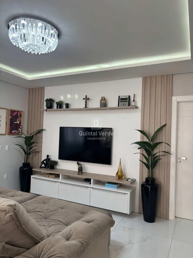 Conta com 3 suítes, lavabo, living integrado e área de serviço, além de 3 vagas de garagem cobertas. Possui acabamento refinado, com mobília sob medida, luminárias e ar-condicionado já instalados.