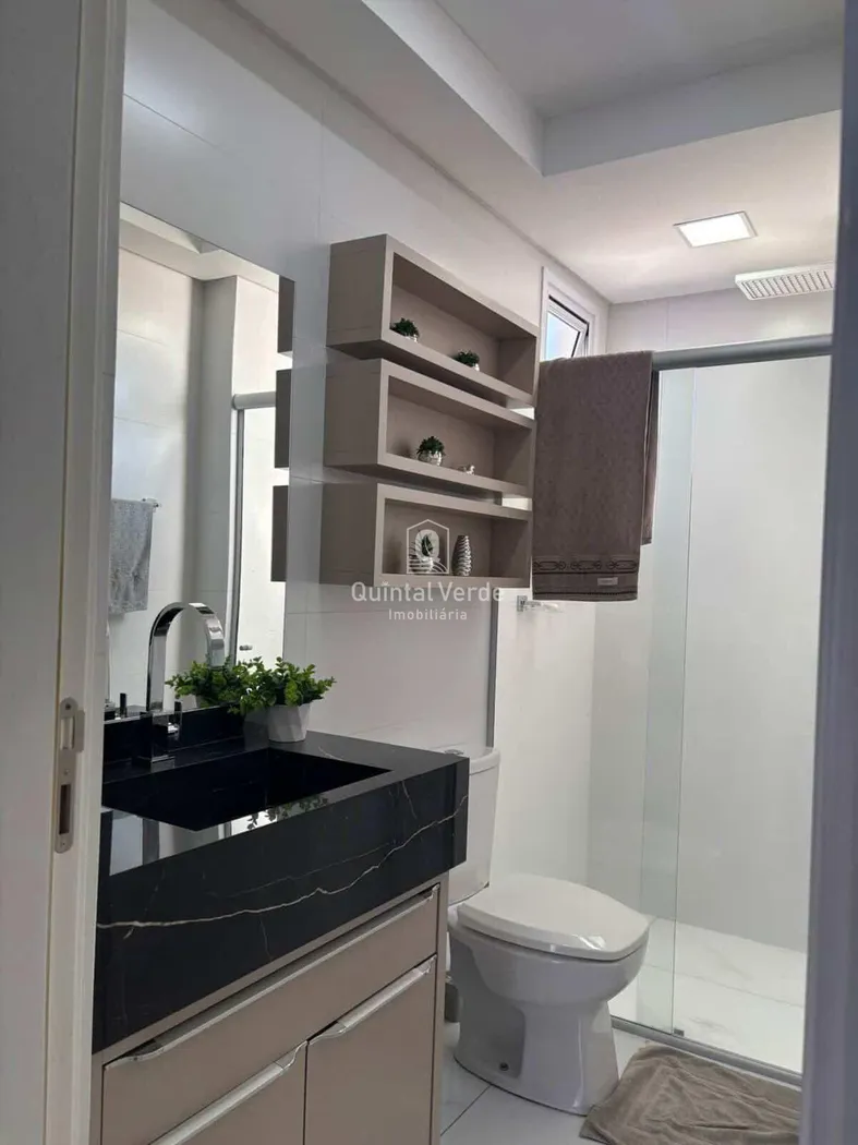 O empreendimento apresenta fachada em pele de vidro, hall de entrada e salão de festas equipados, elevador inteligente, fechadura biométrica, sistema de segurança com câmeras, interfone, portão eletrônico e medidores individuais.