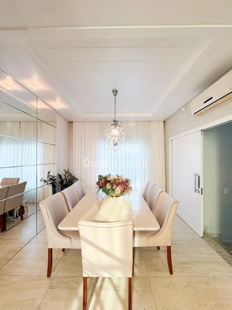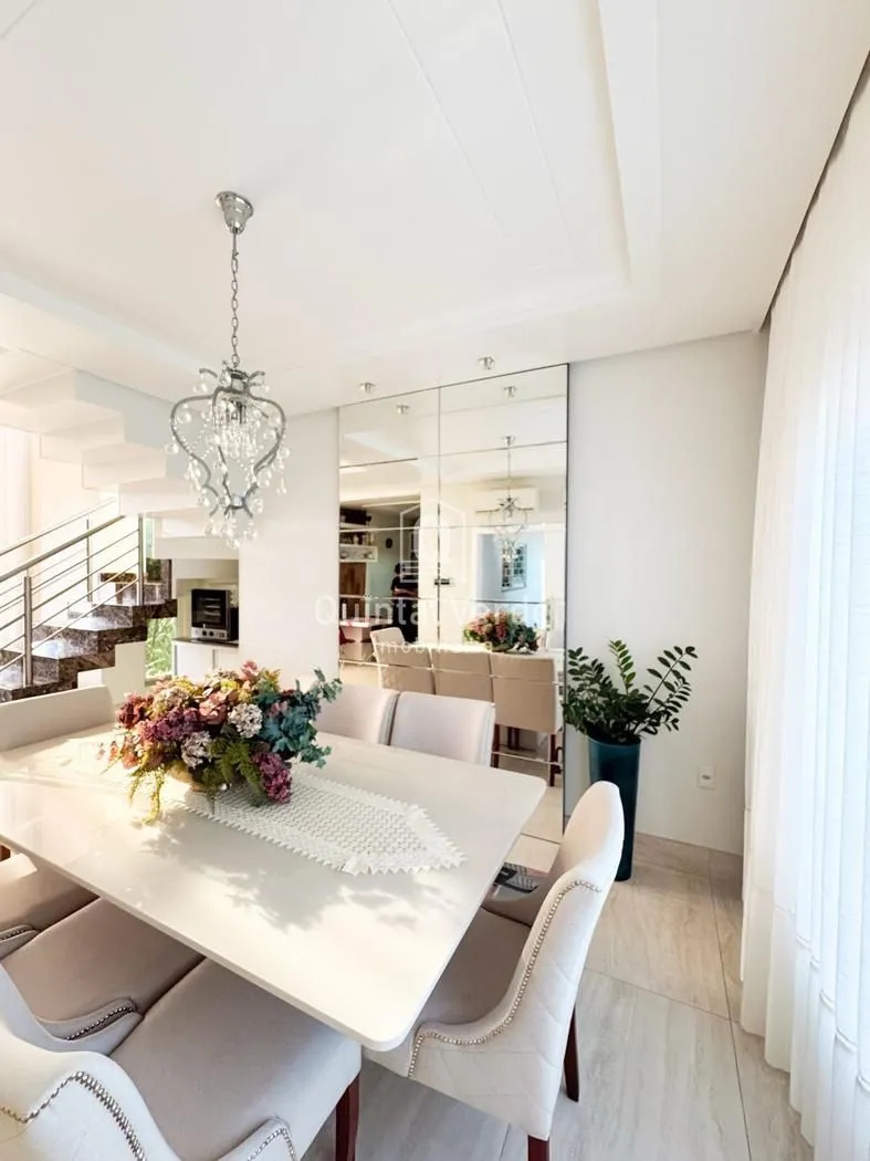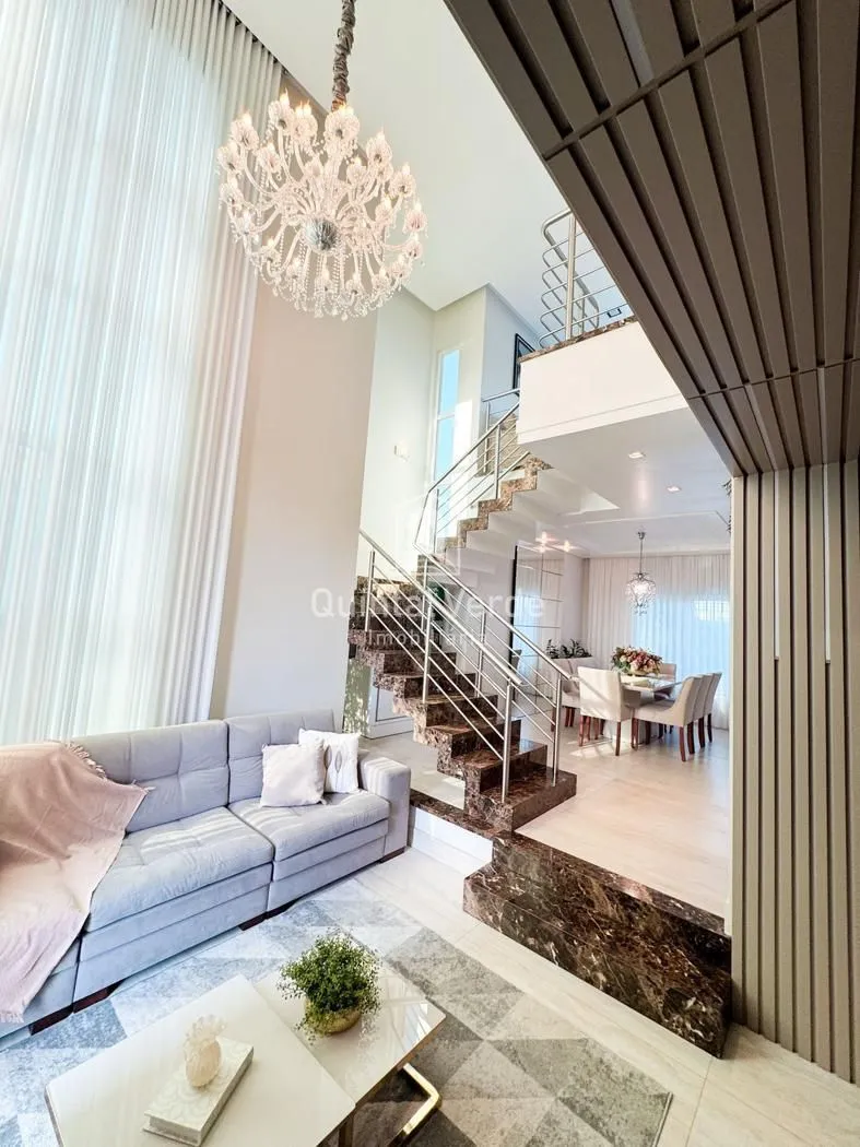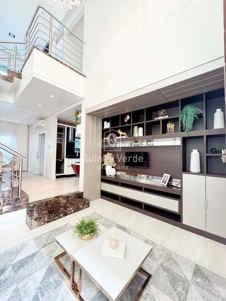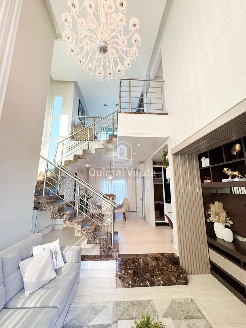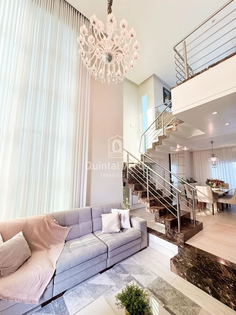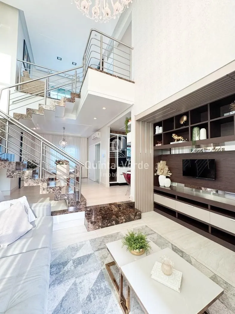 Sala e cozinha com pé direito alto, escada revestida em mármore, lavabo, área de serviço, espaço gourmet com churrasqueira nos fundos e móveis sob medida em todos os ambientes. Garagem com capacidade para até 4 veículos. Uma casa moderna, elegante e pronta para morar em uma das melhores localizações da cidade!