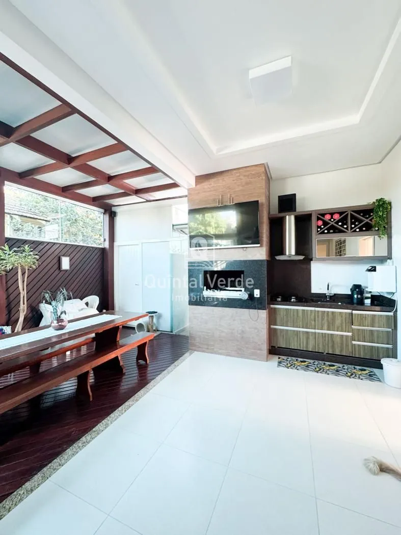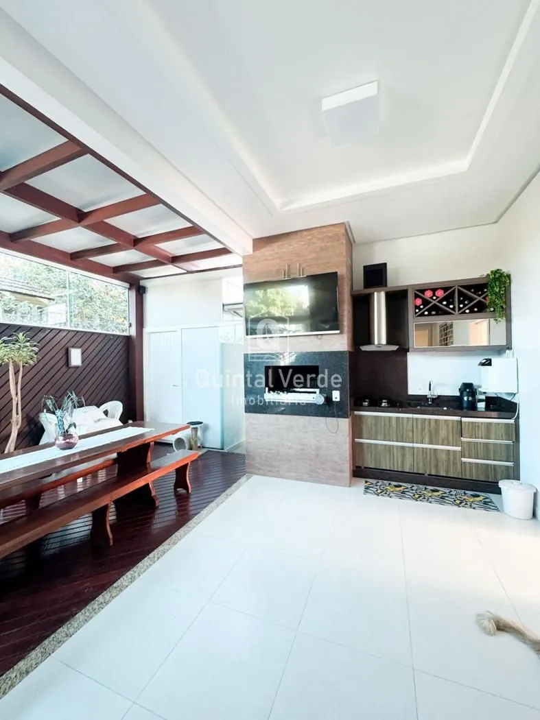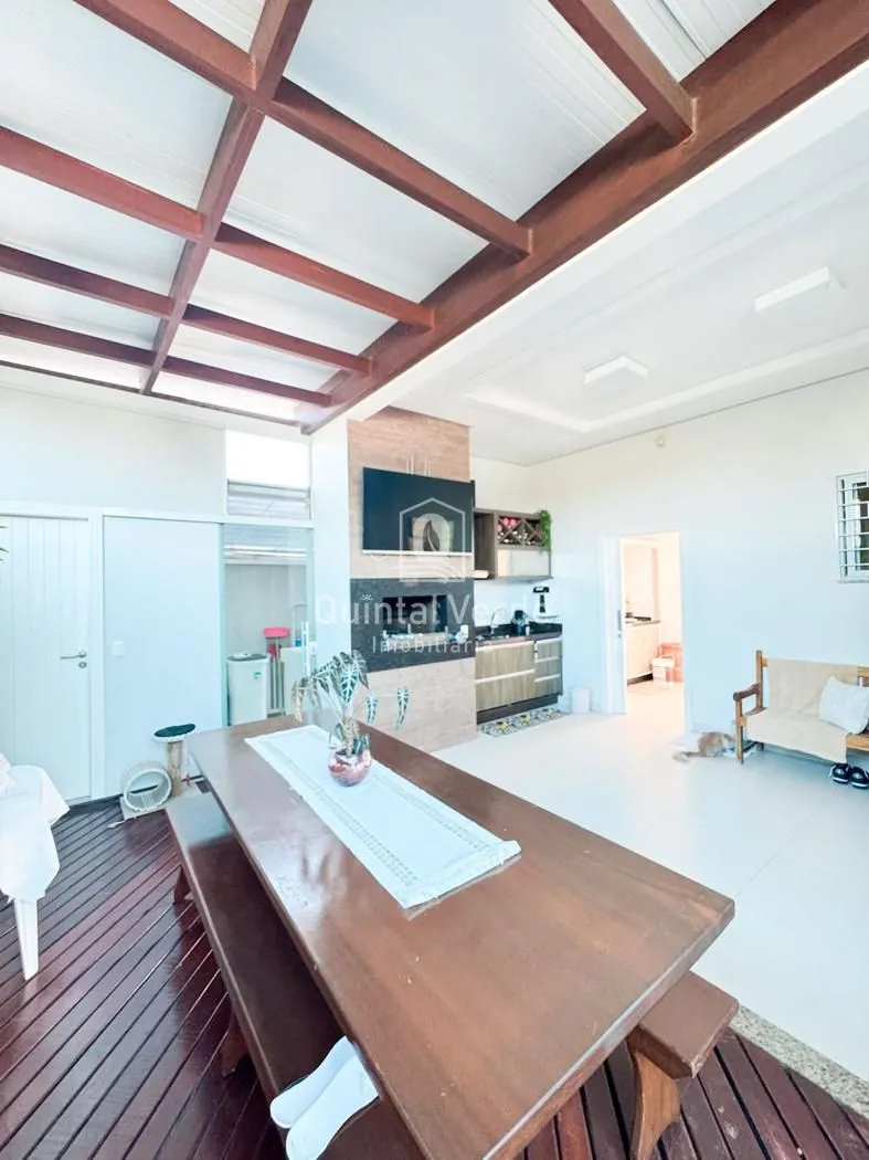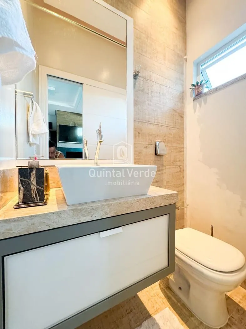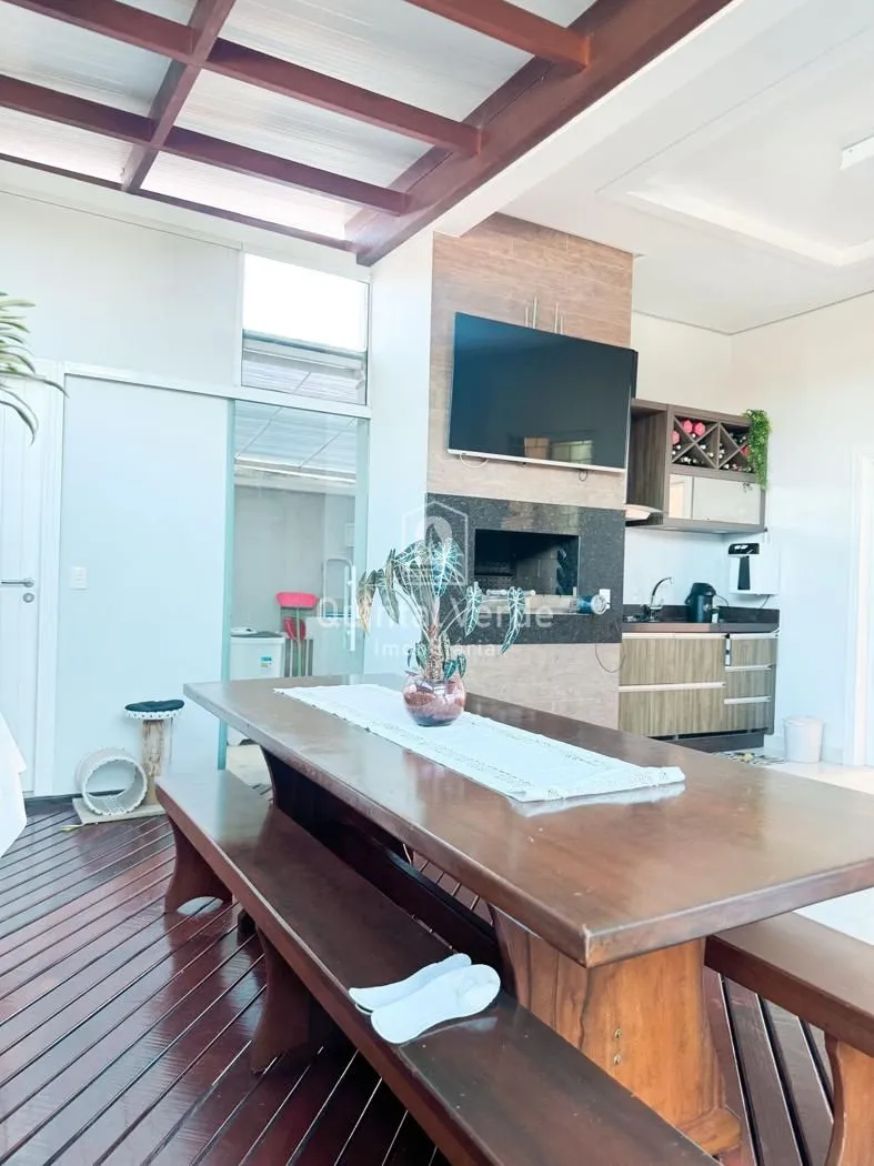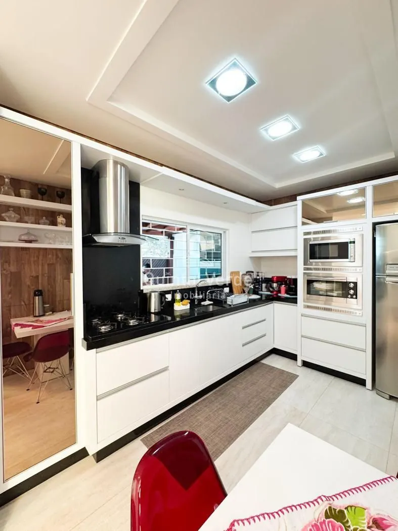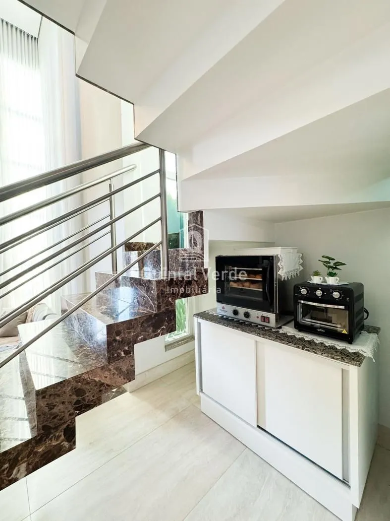 Sala e cozinha com pé direito alto, escada revestida em mármore, lavabo, área de serviço, espaço gourmet com churrasqueira nos fundos e móveis sob medida em todos os ambientes. Garagem com capacidade para até 4 veículos. Uma casa moderna, elegante e pronta para morar em uma das melhores localizações da cidade!